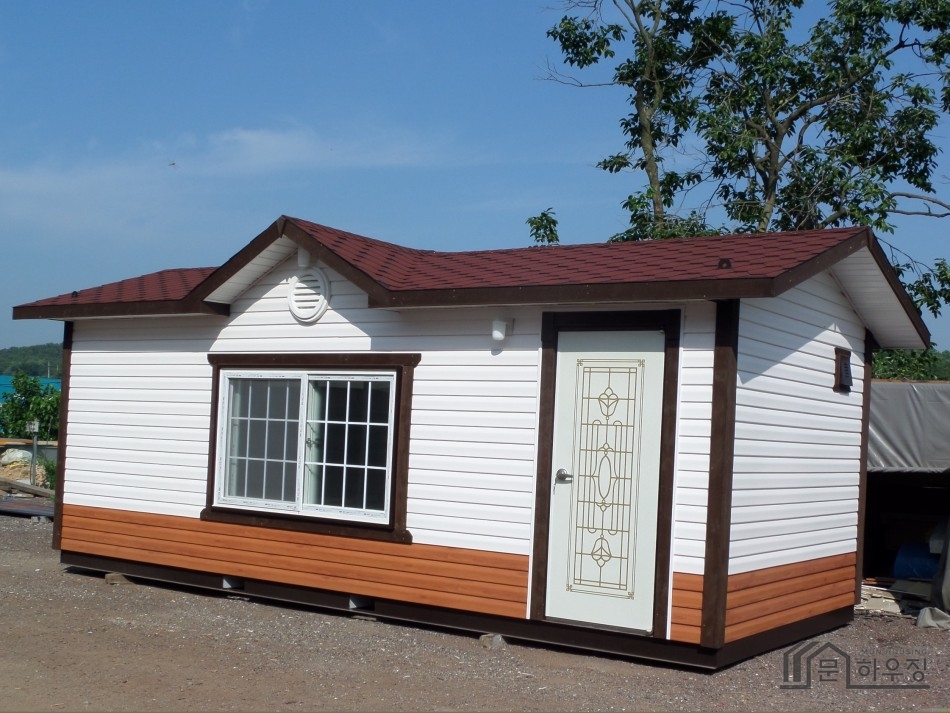 - 스틸 골조+비닐사이딩마감 - 지붕: 스틸트러스+샌드위치판넬 75T+방수쉬트+아스팔트슁글 마감 - 화장실(소).씽크대+전기온수기 30L - 정면창호:12mm Pair(2000×1200) 격자 이중창 |